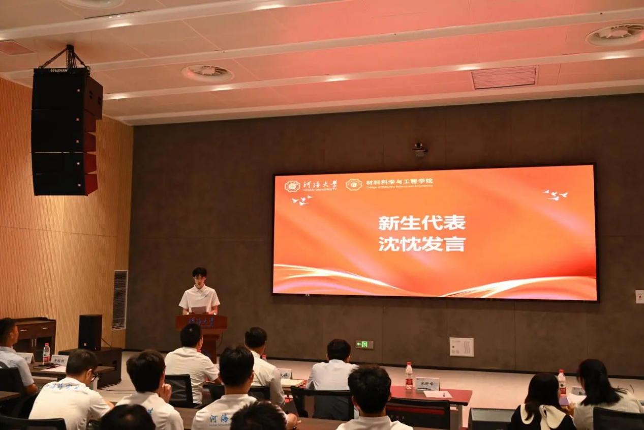 2024级硕士研究生新生沈忱作为新生代表发言,并带领全体学生进行学术诚信宣誓。沈忱同学在发言中表达了自己对未来学习生活的美好期望,并以“博学而笃志”为座右铭,希望大家都能成为具有“中国灵魂、全球视野、河海特质”的新时代河海人。