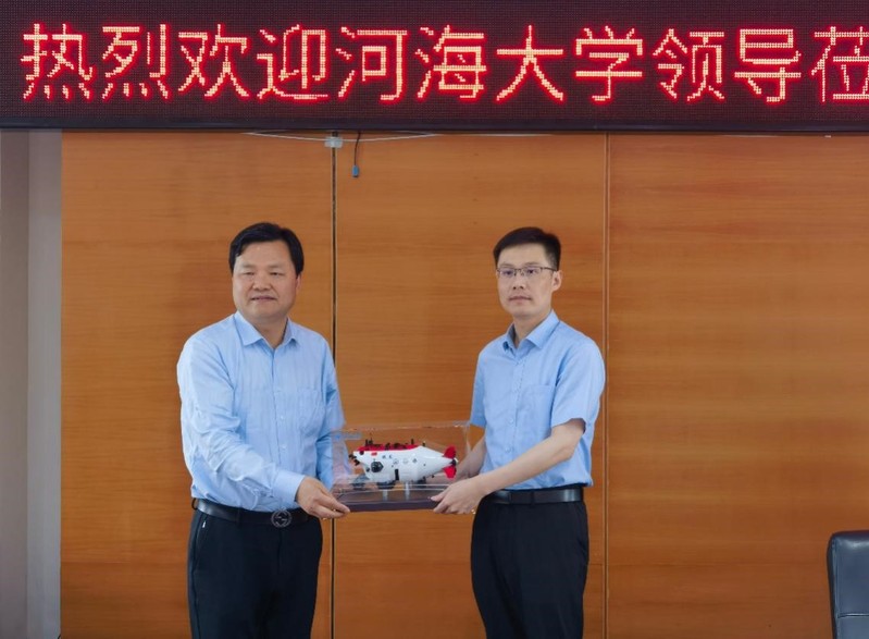 会上,河海大学向该校赠送喜报及“蛟龙号”深潜器模型,河海大学与南菁高级中学领导、老师们进行深入交流。