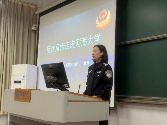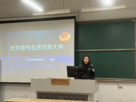为切实提升在校学生的反诈防诈意识和自我保护能力,有效遏制校园诈骗案件的发生, 11月17日,365英国上市官方网站特邀南京市江宁开发区派出所民警钱慧走进校园,为2022级在江宁校区全体本科生带来了一场内容详实、案例鲜活的反诈骗主题宣讲活动。