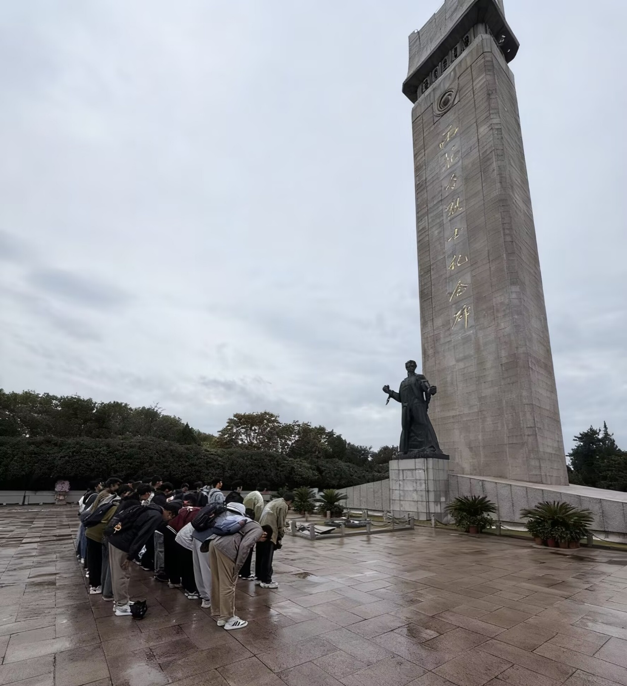 在镌刻着忠魂的雨花台烈士纪念碑前,同学们的躬身,凝萃着对英烈的敬仰,也如一颗火种,在青春心底点燃传承红色精神的炽热情怀,每一次俯身都是与历史的深情对话,是对英烈最深情的追缅,每一寸敬意都化作与红色精神同频共振的血脉共鸣,谱写为自历史长河汲取力量的青春誓言,也让英雄的光芒在新时代依旧熠熠生辉。