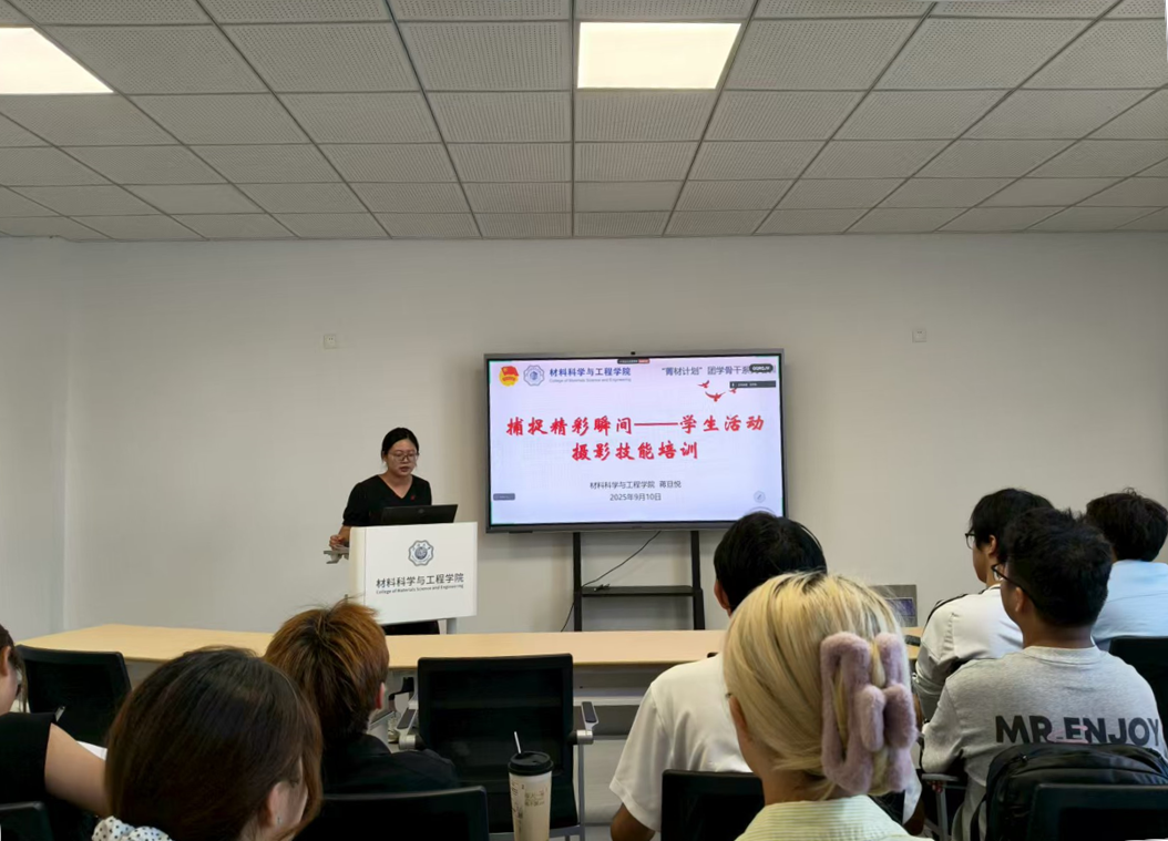 为进一步提升我院团学骨干的宣传综合素养,用镜头讲好材料学院故事,9月10日,365英国上市官方网站“菁材计划”团学骨干系列培训之《捕捉精彩瞬间——学生活动摄影技能培训》在56号楼436举行。本次培训由学院团委书记蒋旦悦老师主讲,为同学们带来了一场“干货”满满的技能盛宴,学院团学组织骨干和班级代表参加。
